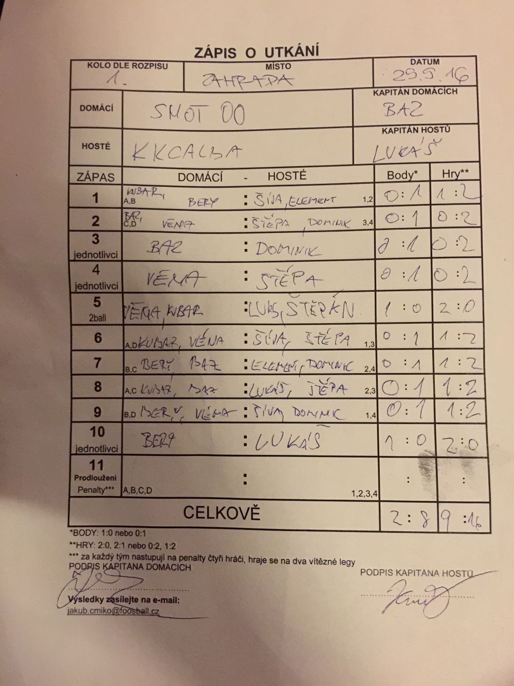 | Kontumace | 0 | 0% |