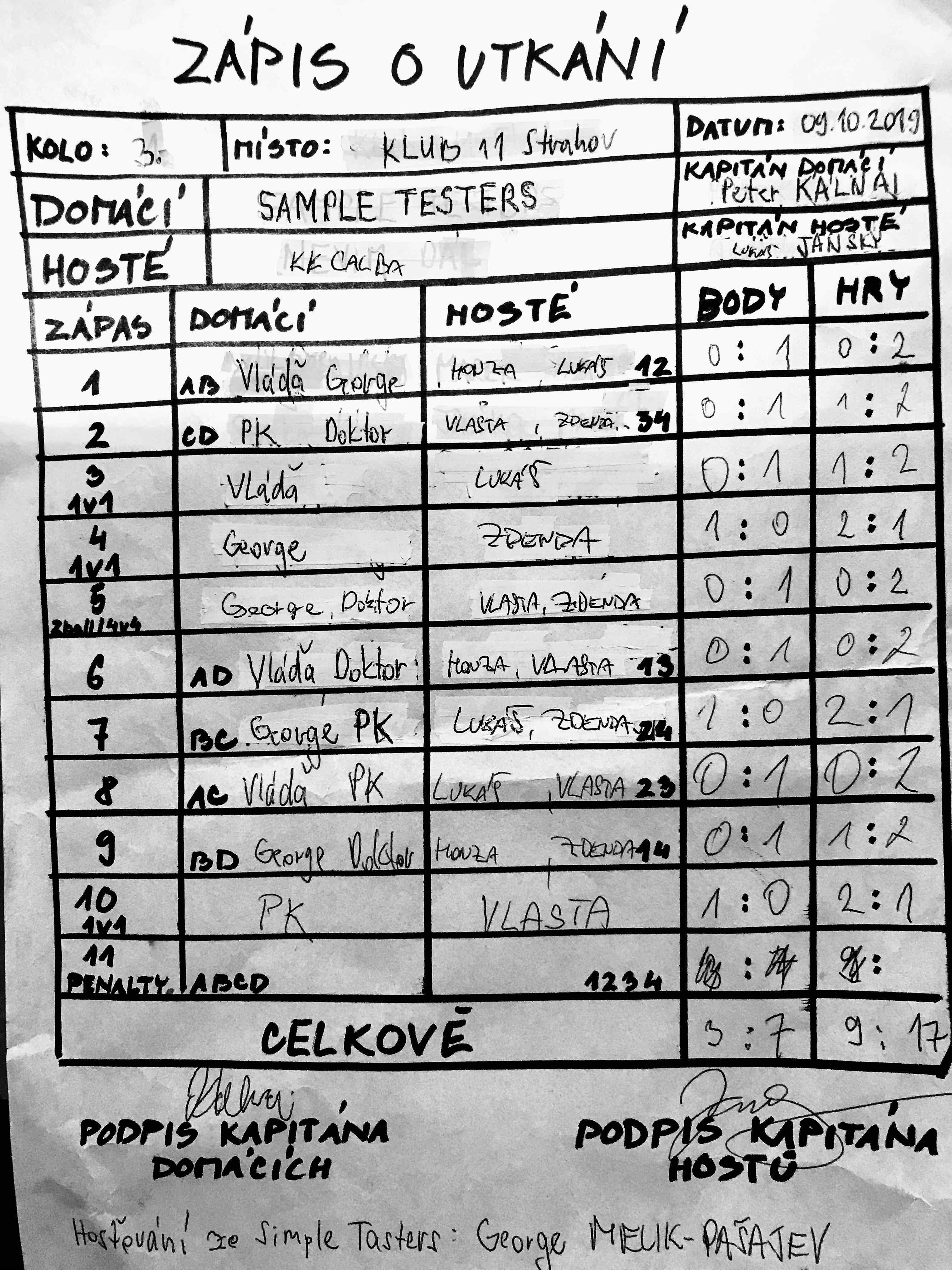| Kontumace | 0 | 0% |