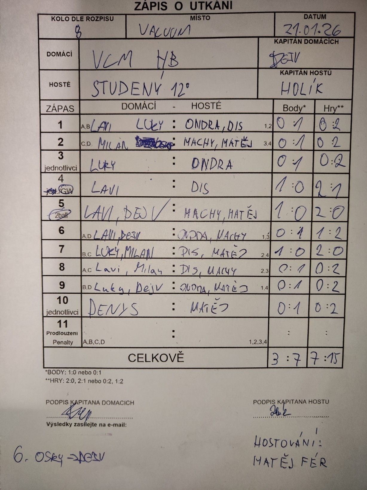 | Disciplína | Počet zápasů | Výhry | Prohry | Úspěšnost |