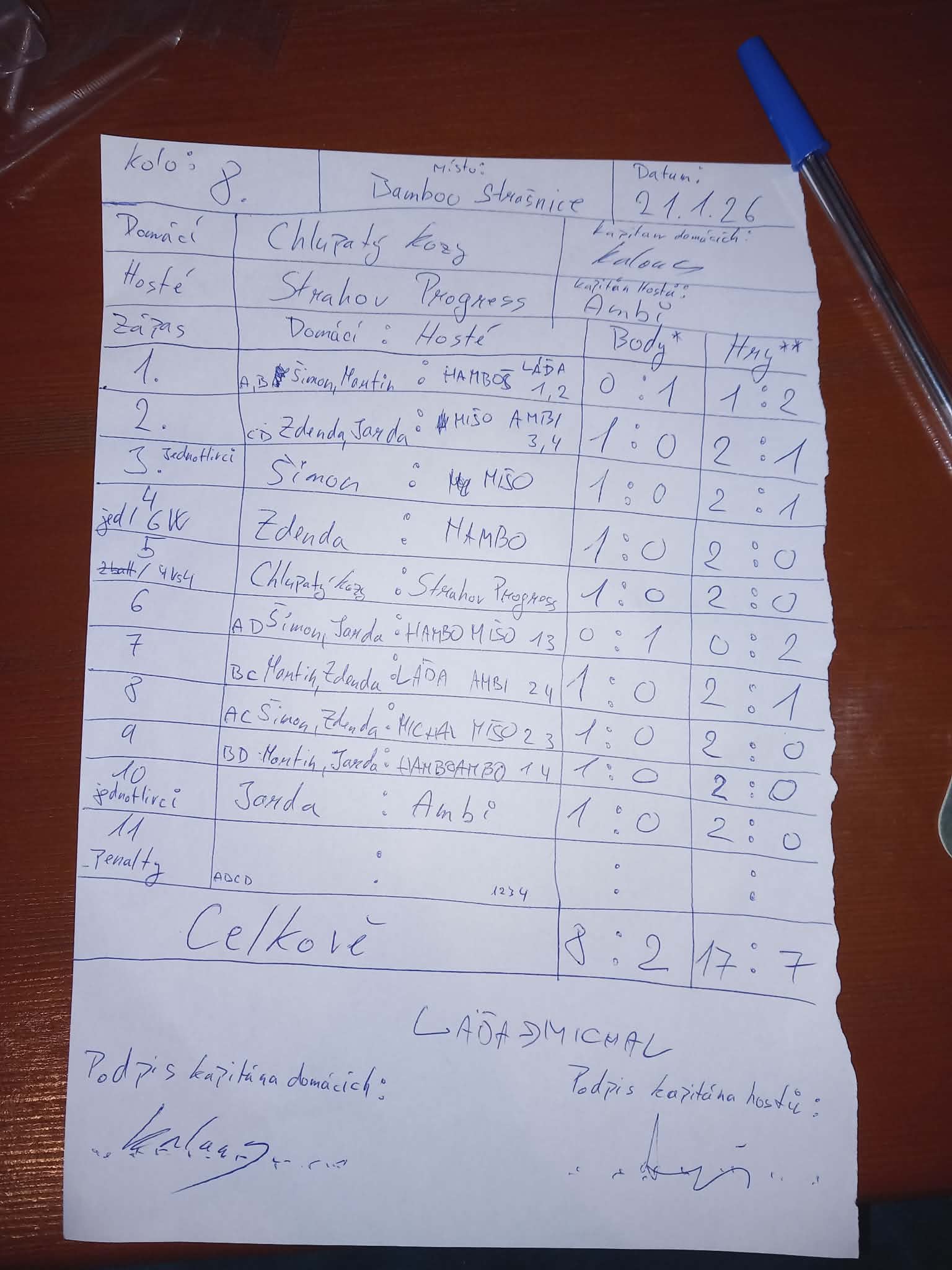 | Celkem zápasů | 8 |