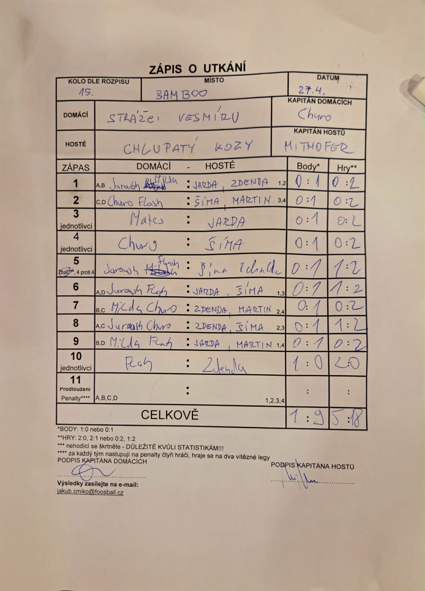 Celkem 18 zápasů
