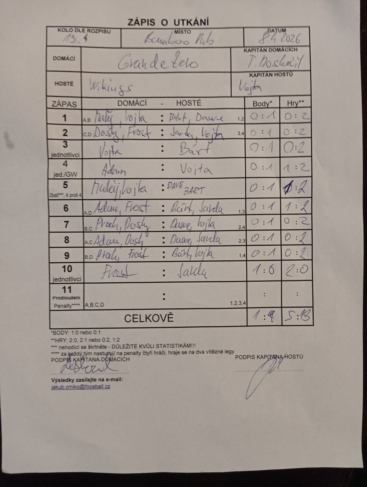 | Kontumace | 0 | 0% |