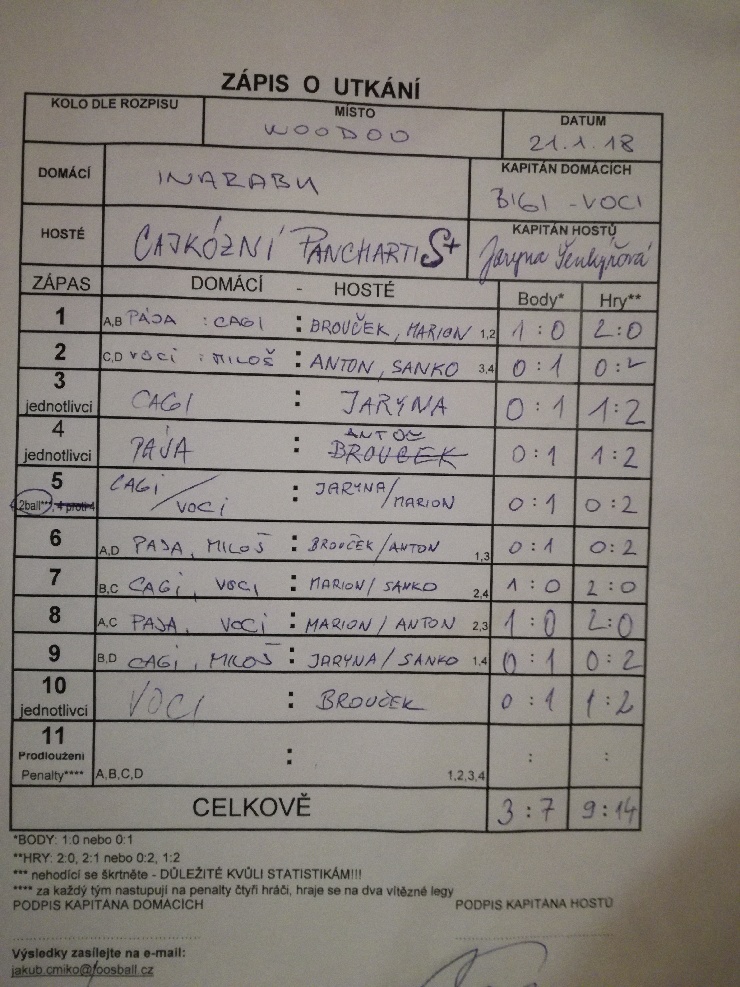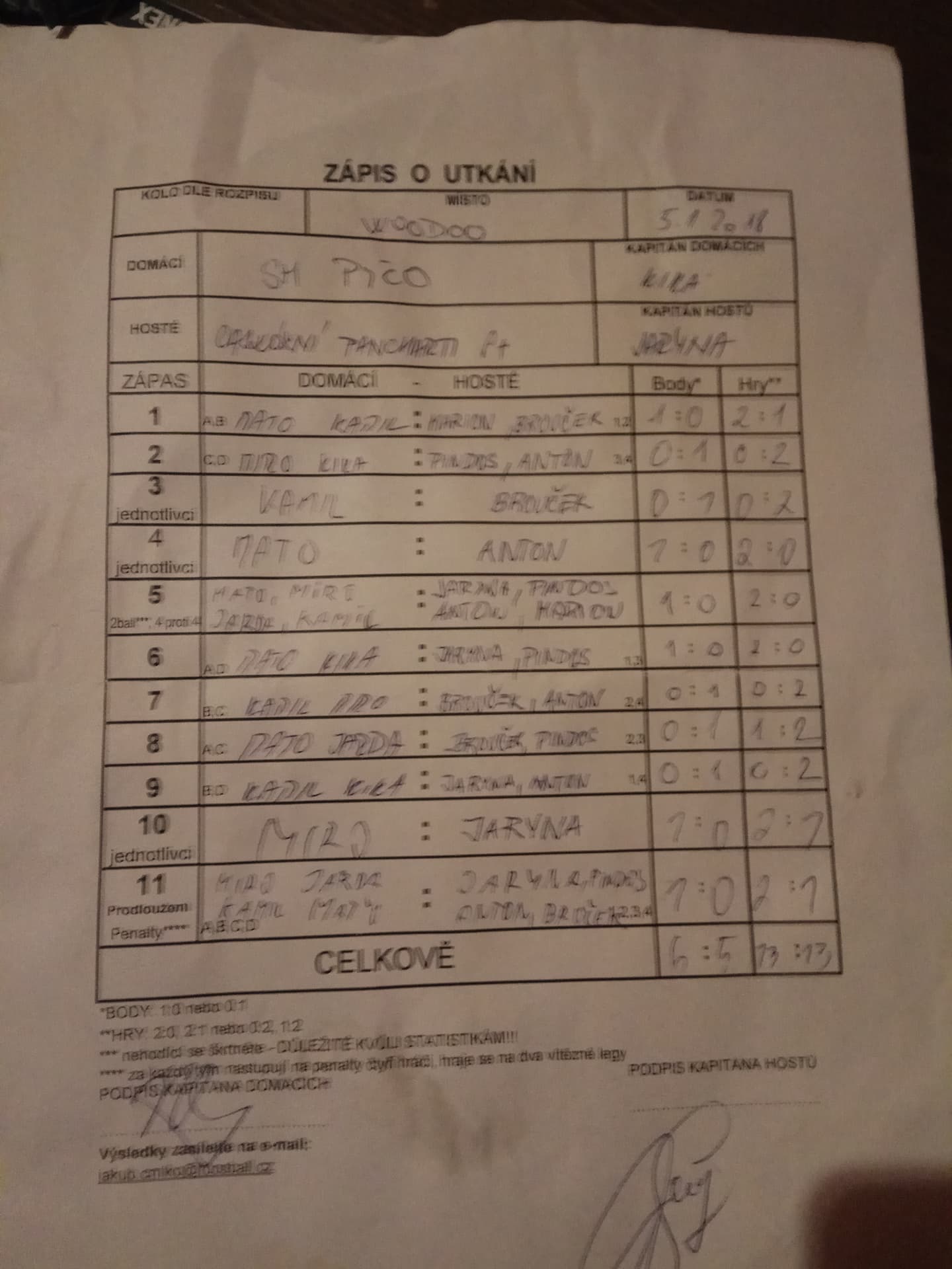 | Disciplína | Počet zápasů | Výhry | Prohry | Úspěšnost |