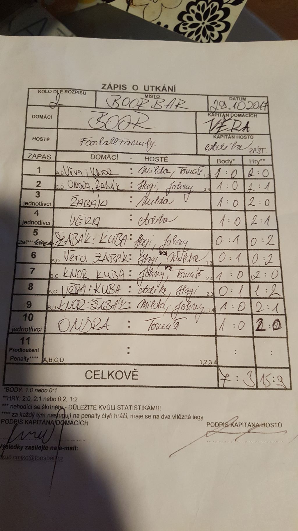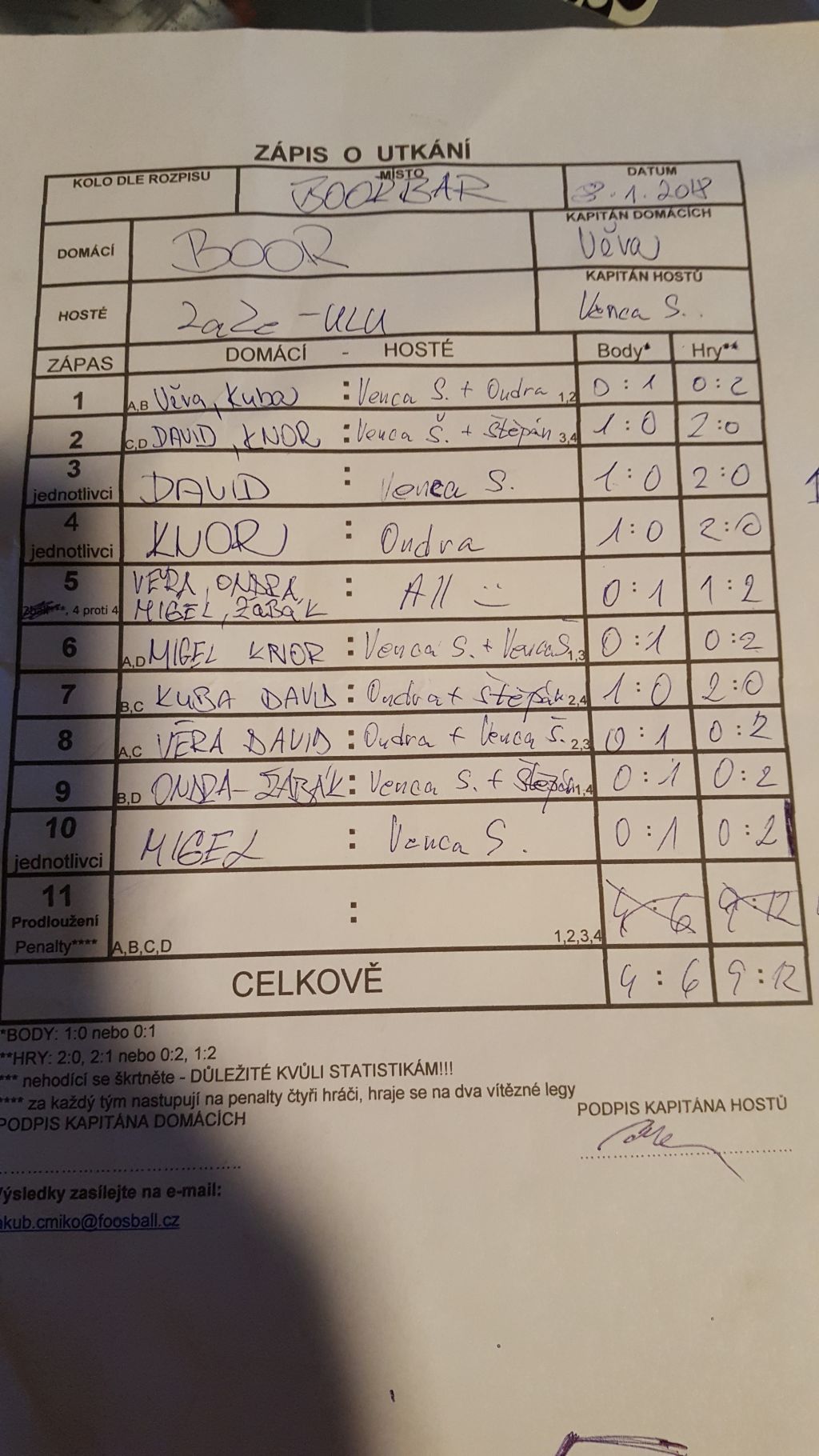 | Celkem zápasů | 10 |
