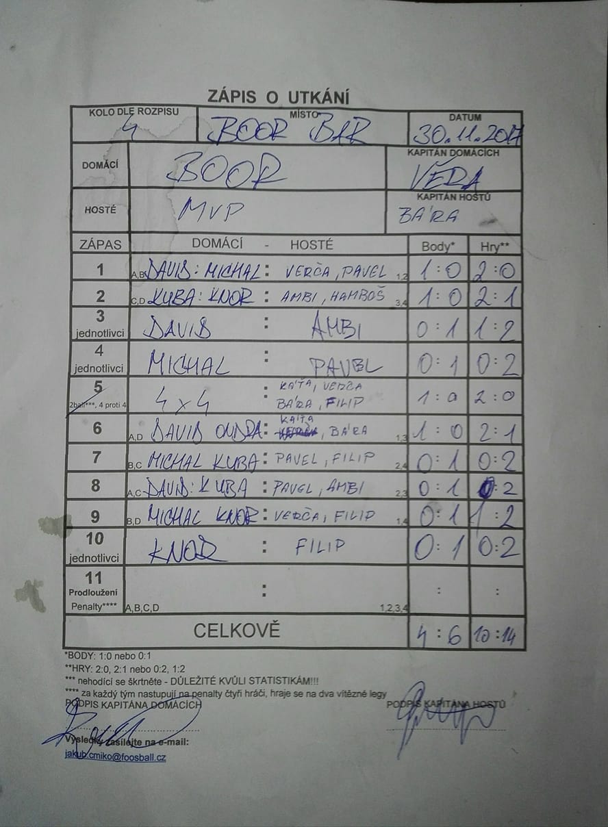 | Celkem zápasů | 30 |