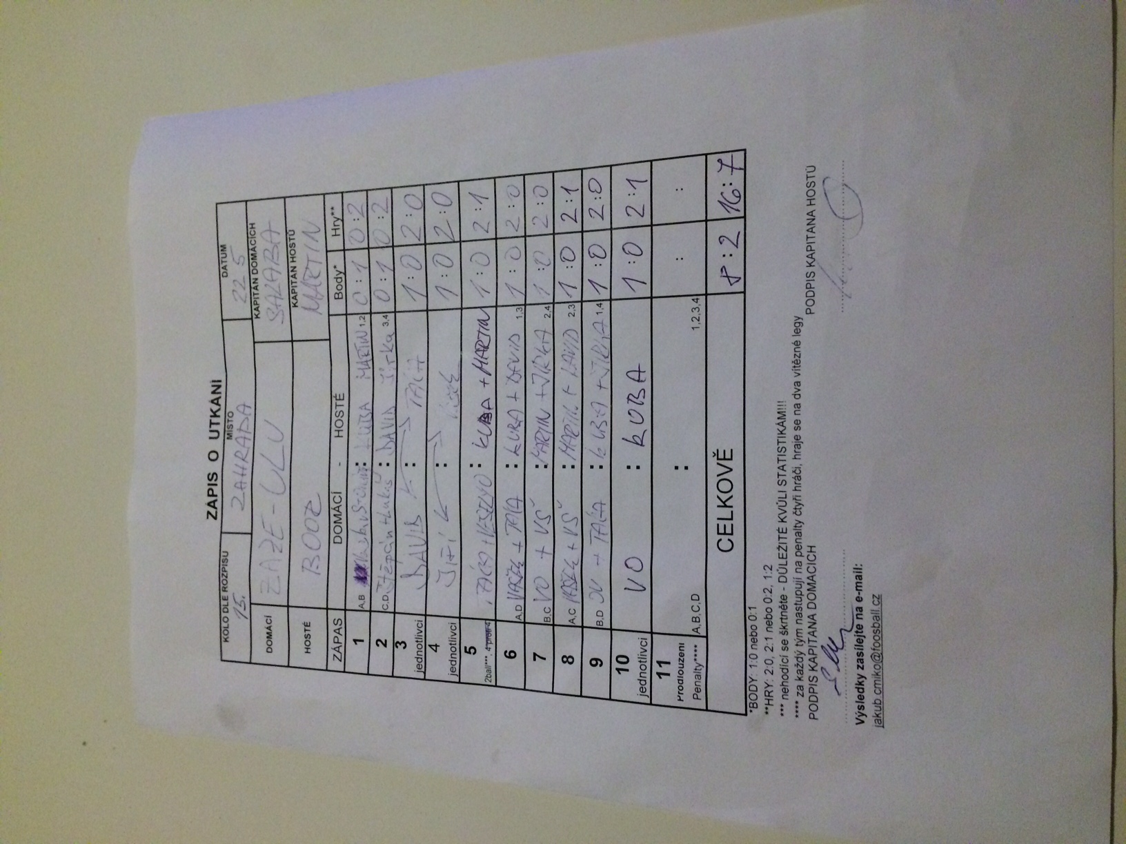 | Kontumace | 2 | 13% |