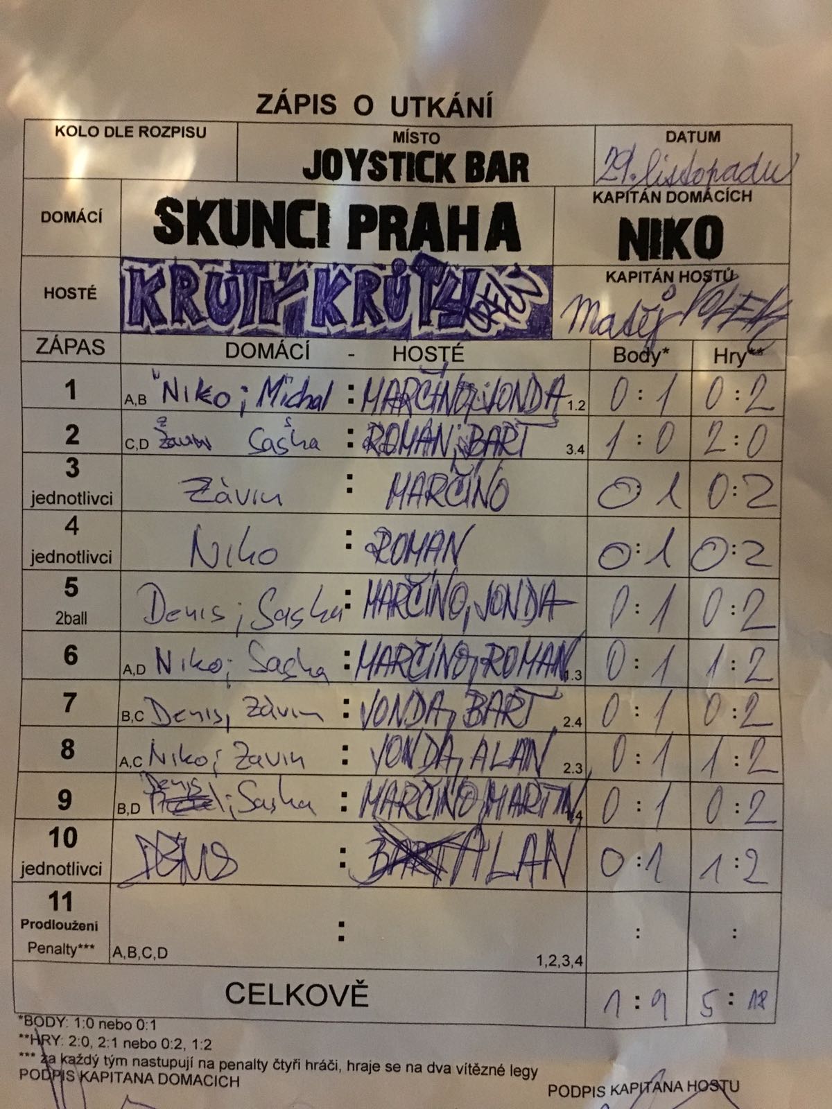 | Celkem zápasů | 29 |