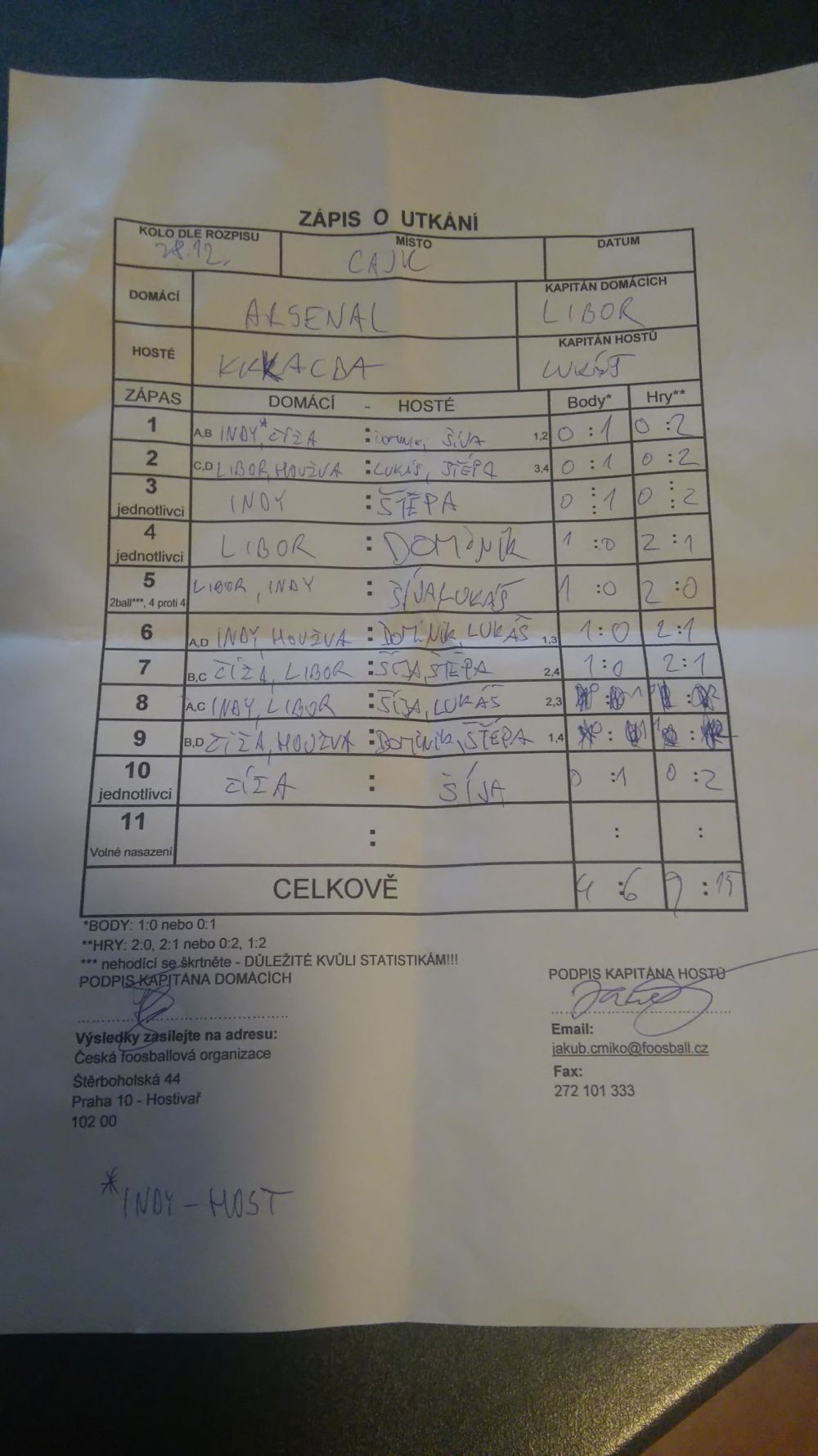 | Kontumace | 0 | 0% |