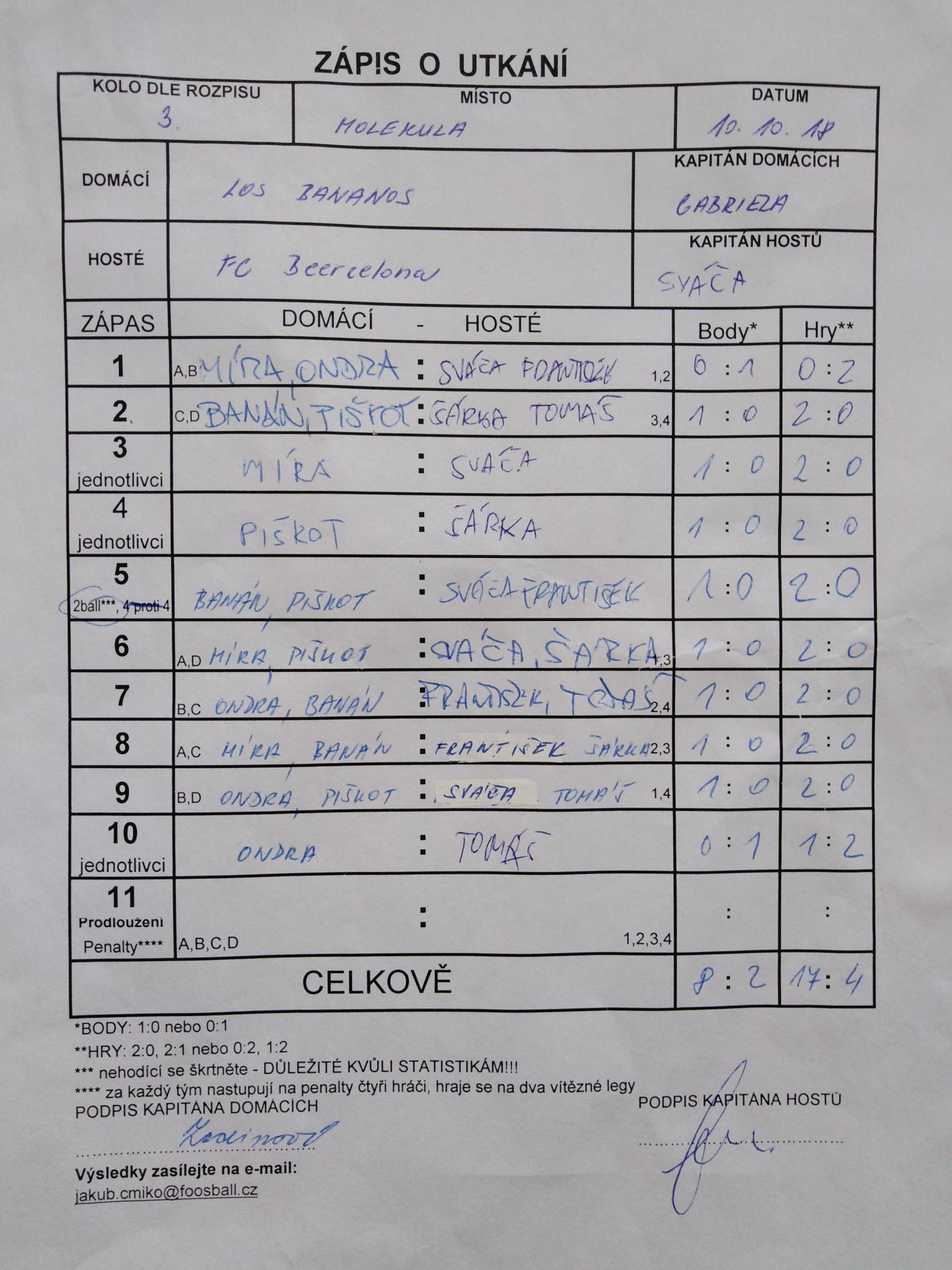 | Kontumace | 0 | 0% |