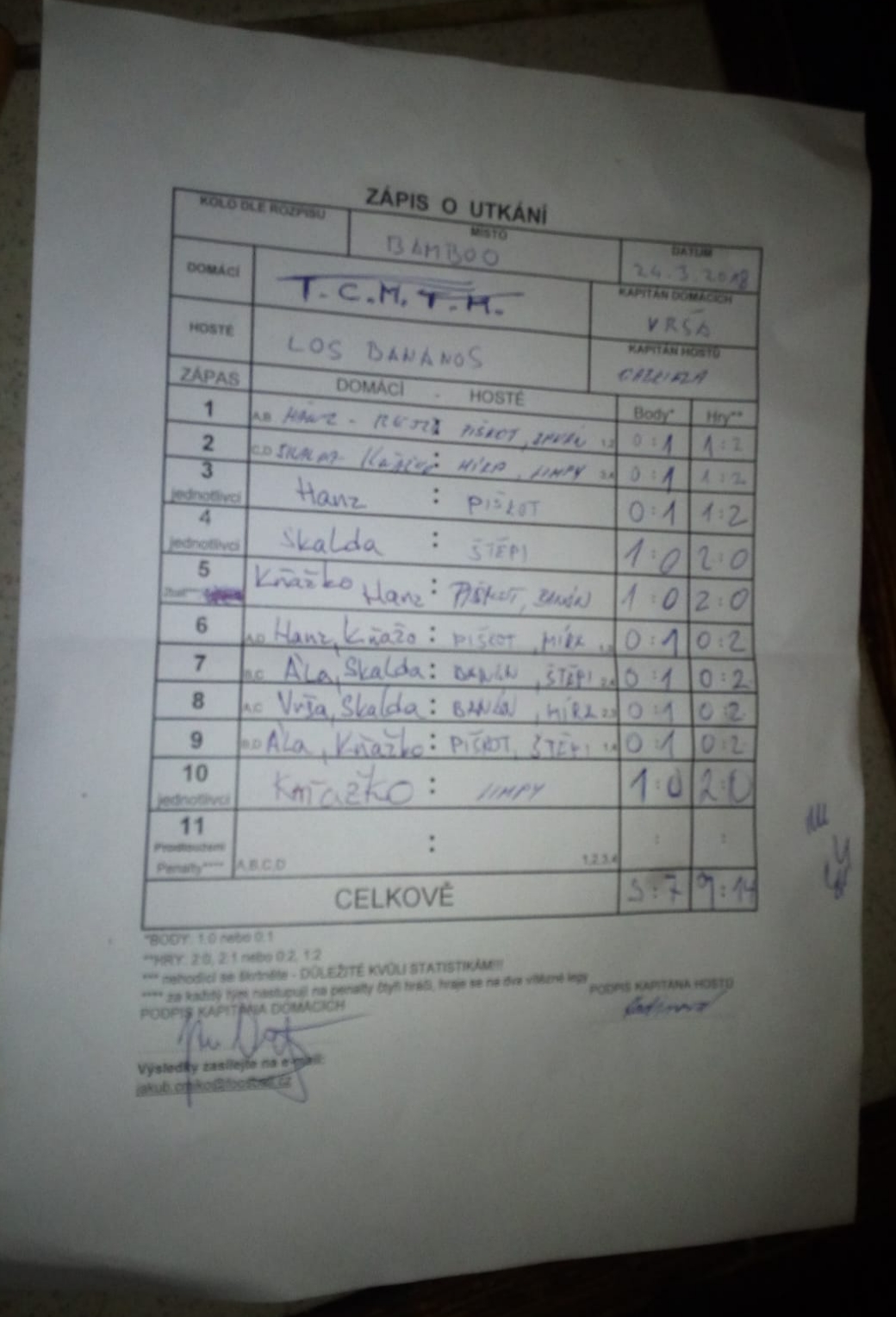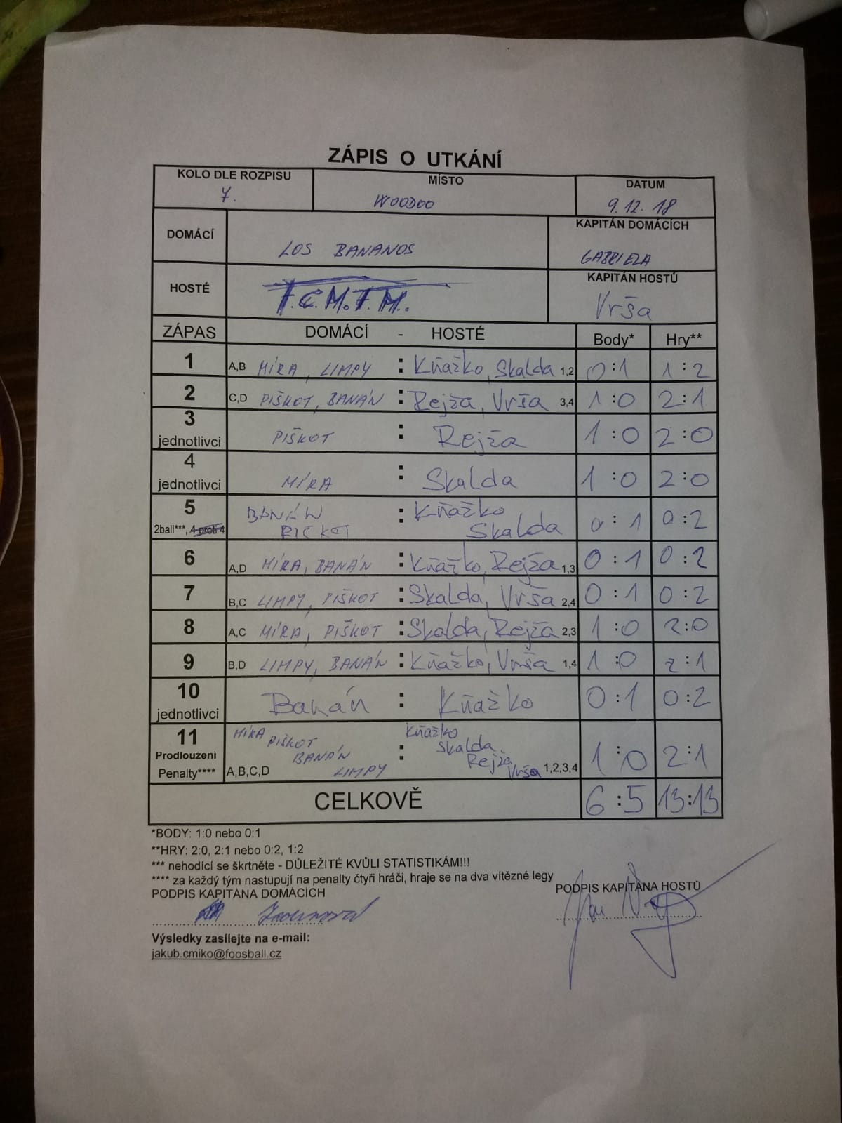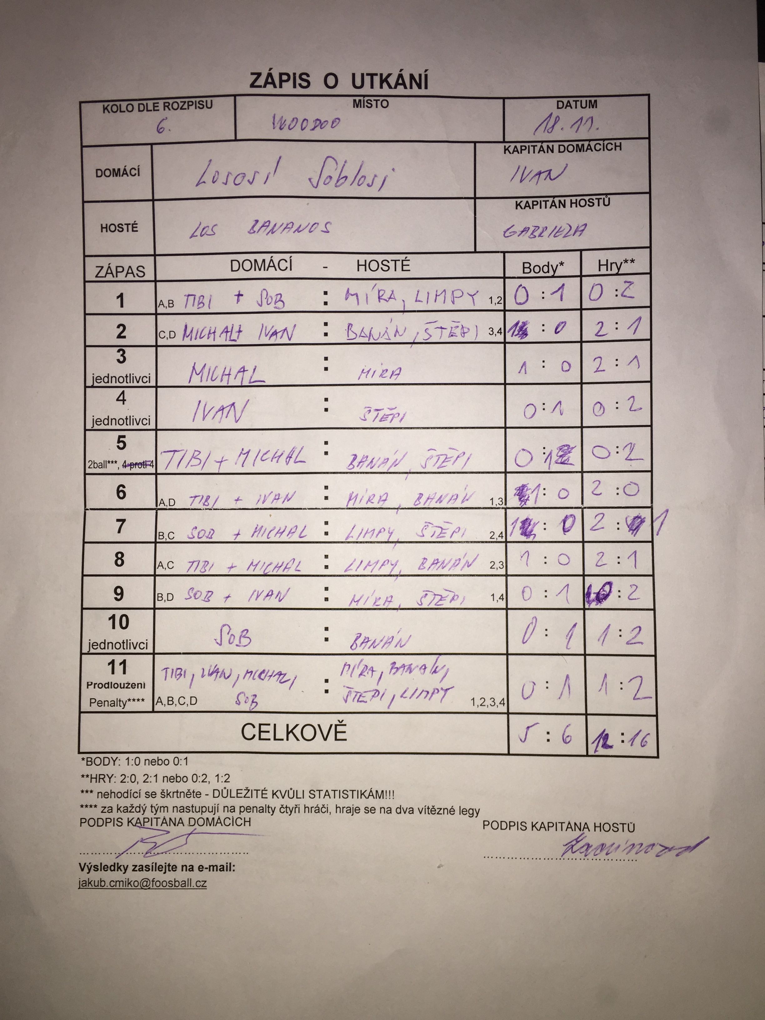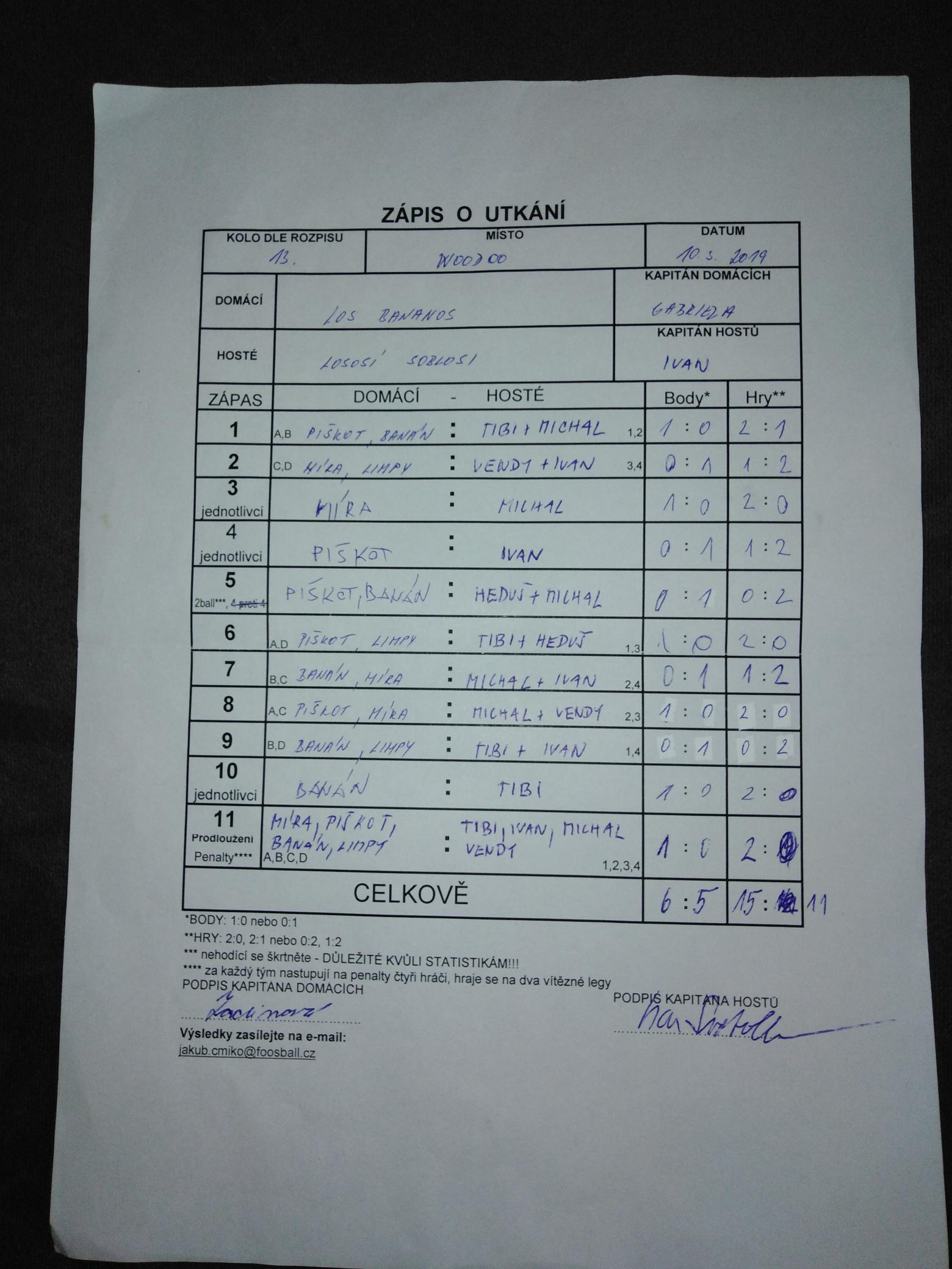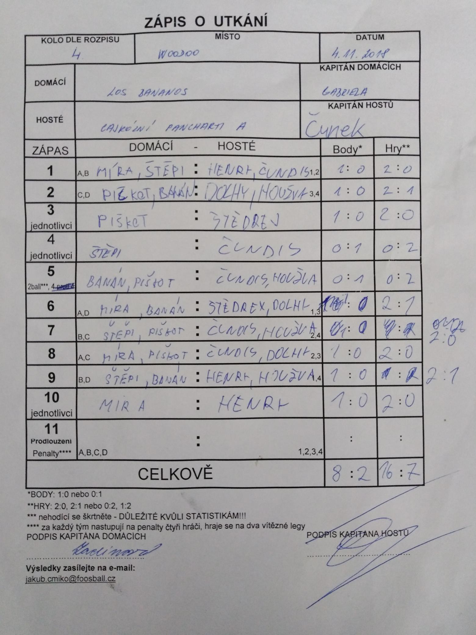 | Celkem zápasů | 30 |