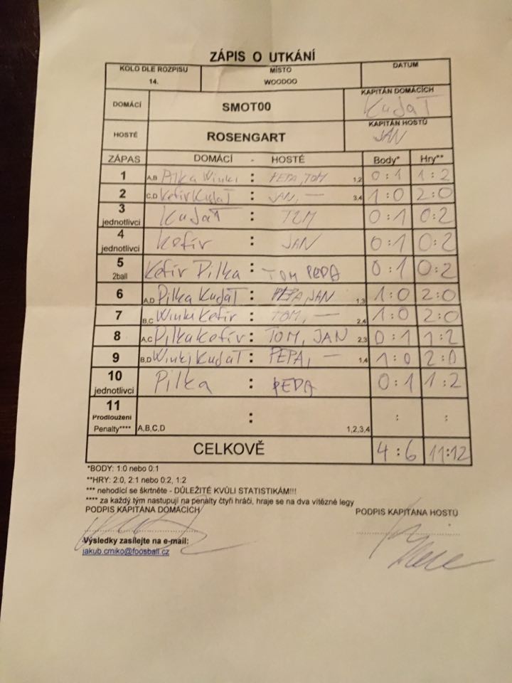 | Kontumace | 0 | 0% |
