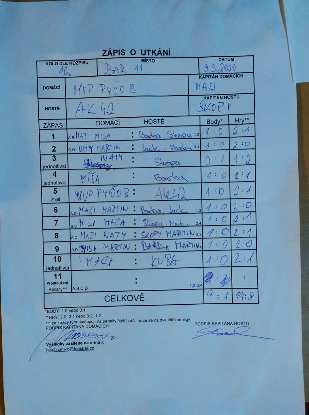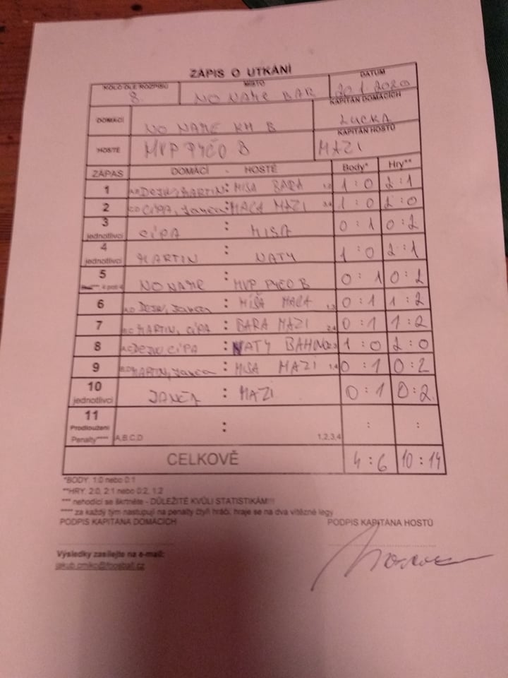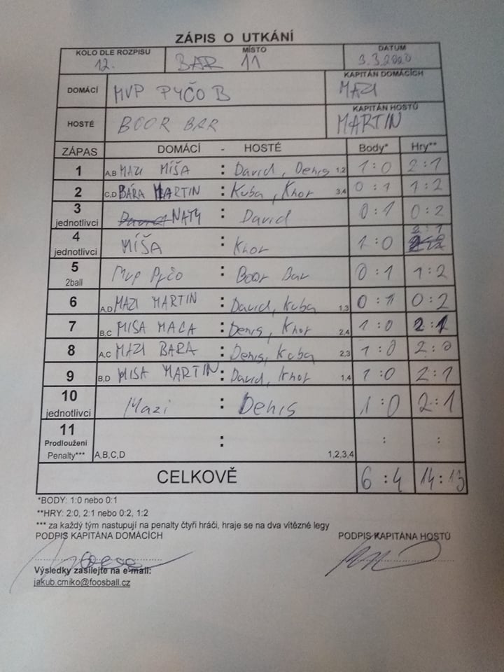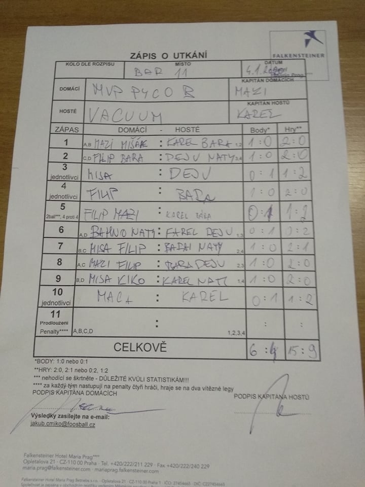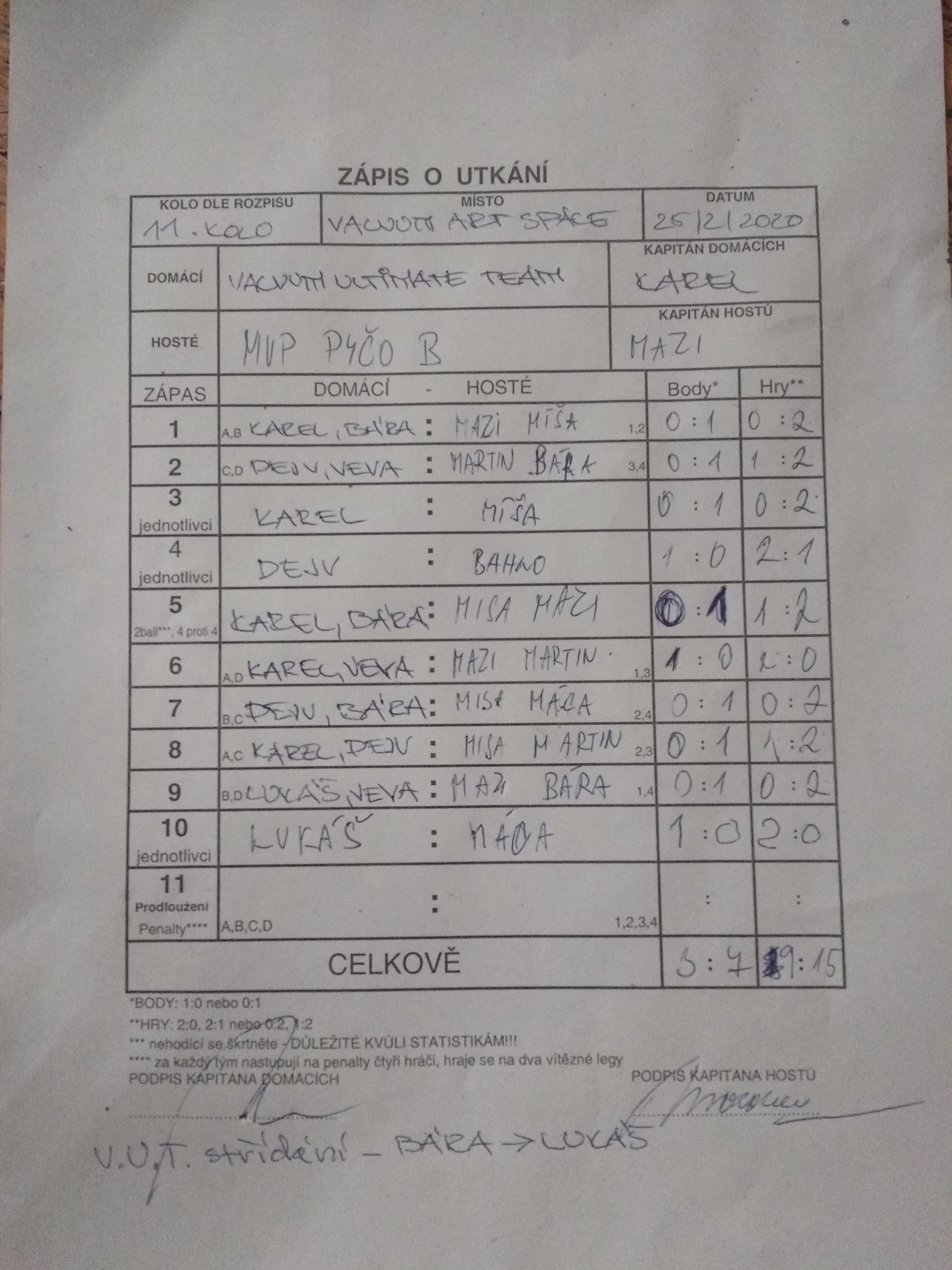 | Disciplína | Počet zápasů | Výhry | Prohry | Úspěšnost |