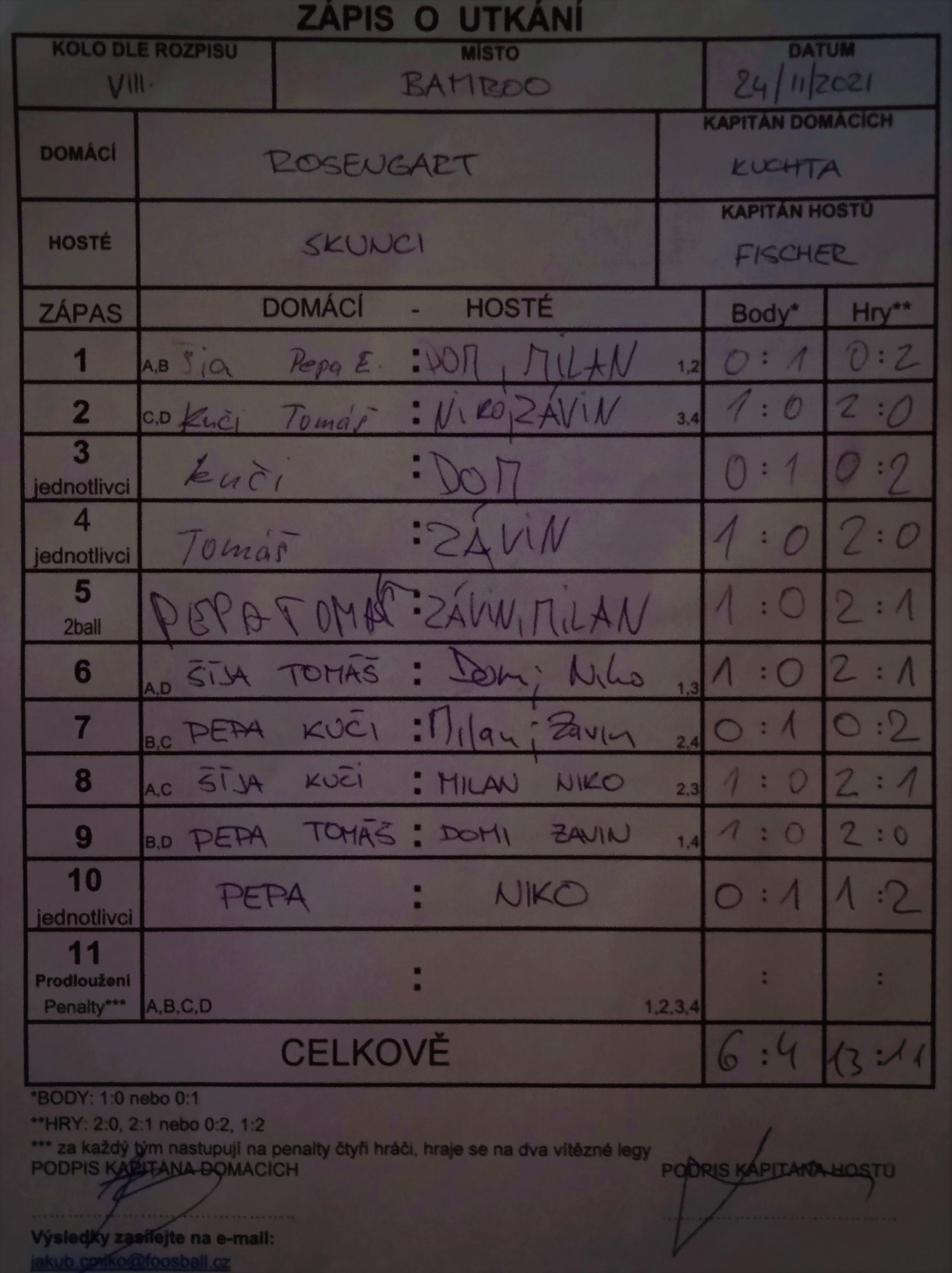 | Celkem zápasů | 36 |
