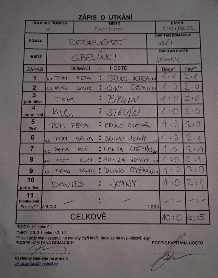 | Utkání celkem | 22 | 100% |