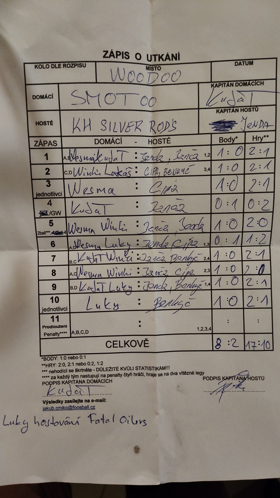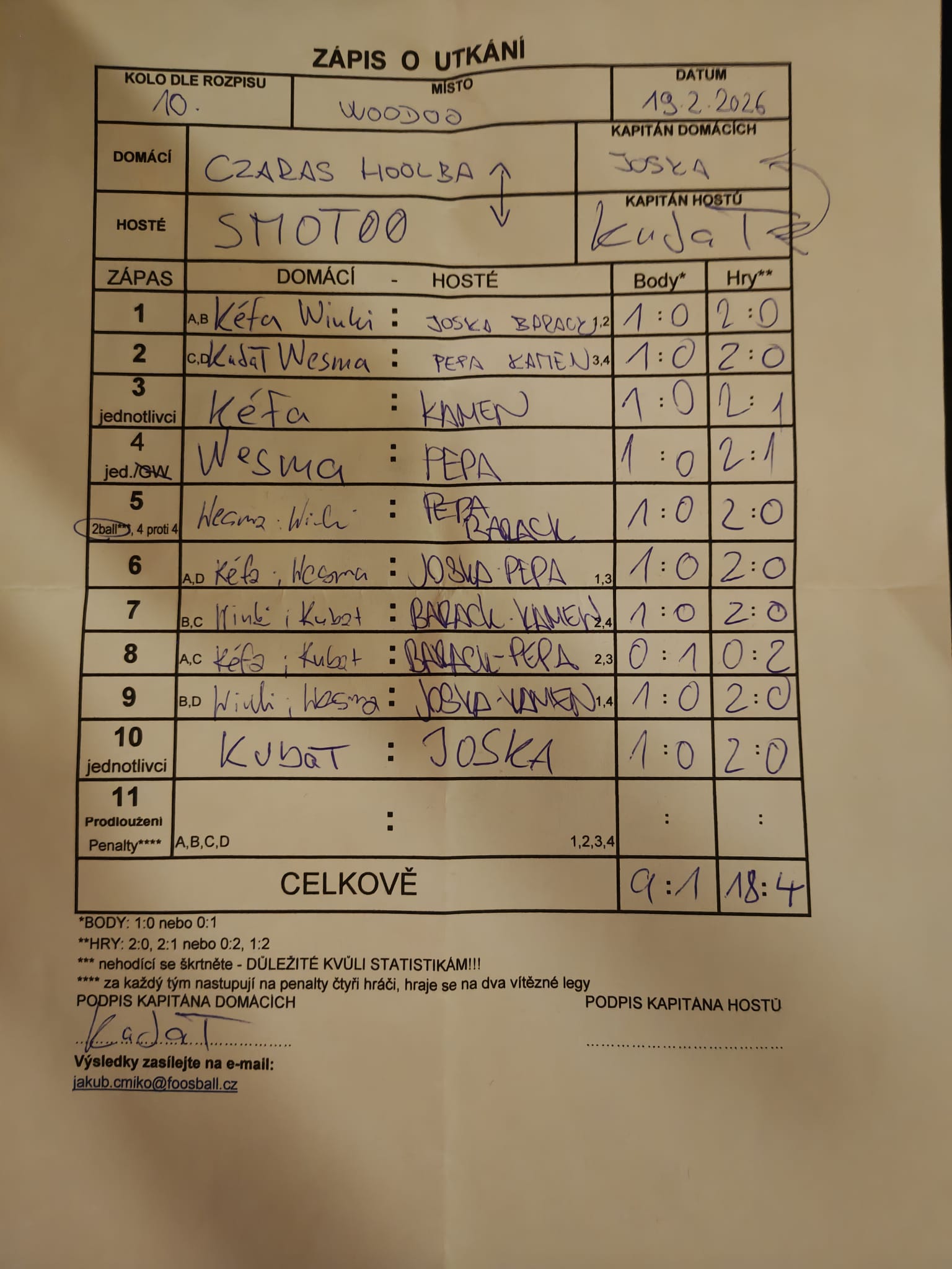 | Celkem zápasů | 26 |