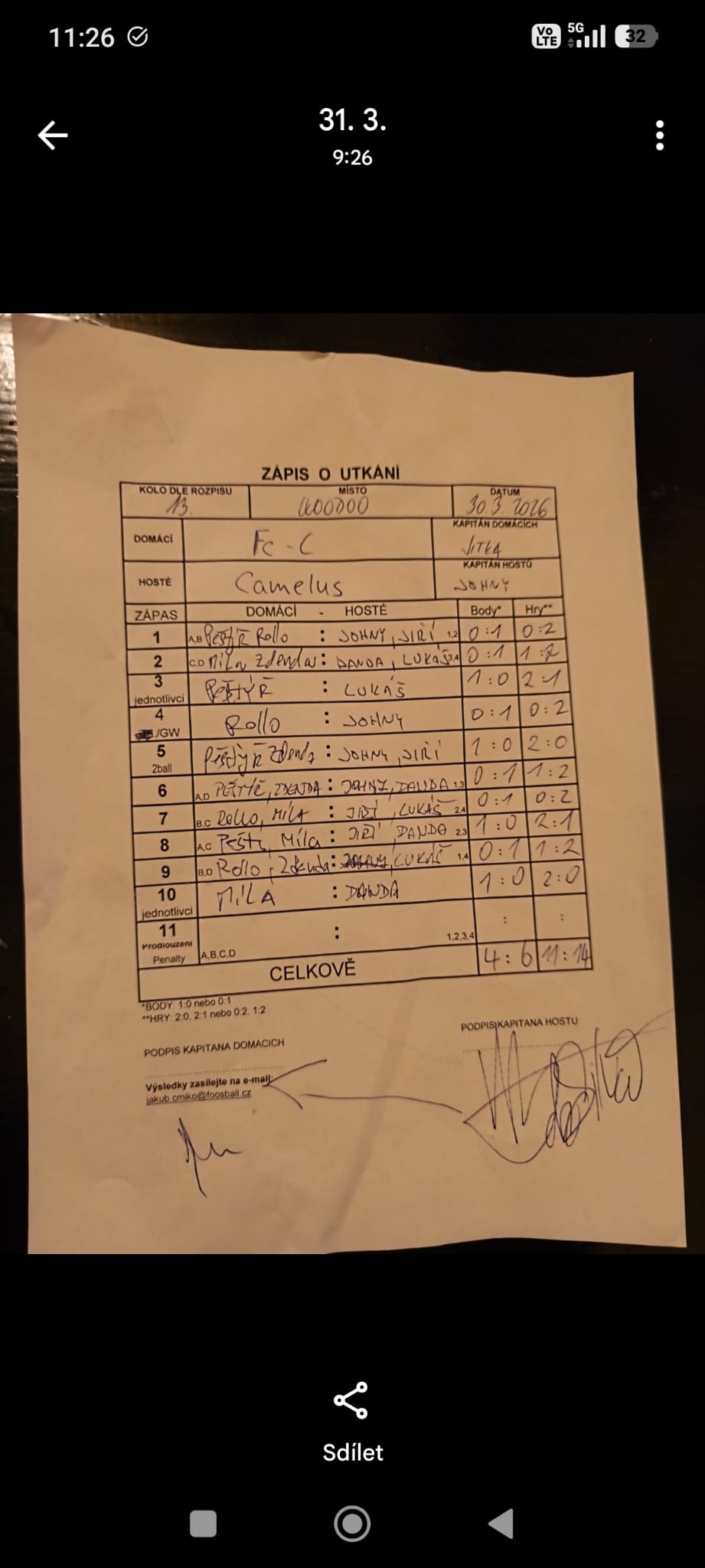 | Kontumace | 0 | 0% |
