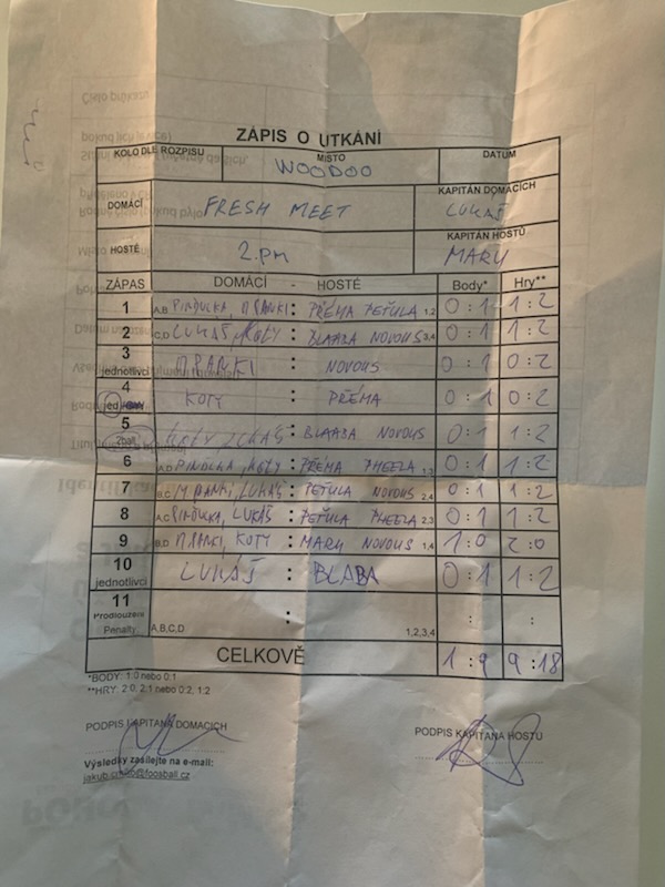 | Disciplína | Počet zápasů | Výhry | Prohry | Úspěšnost |