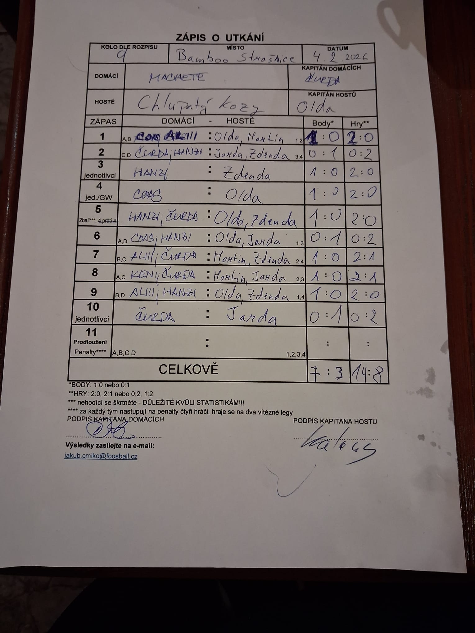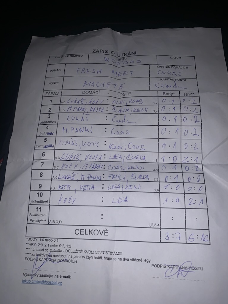 | Kontumace | 0 | 0% |