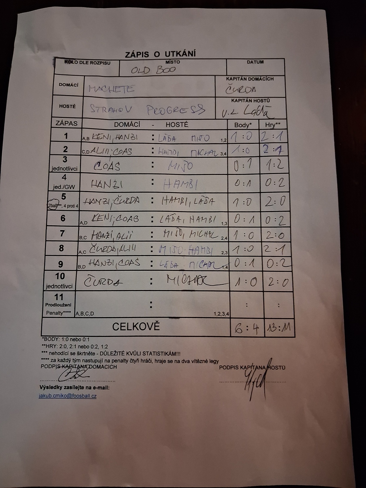 | Utkání celkem | 13 | 100% |