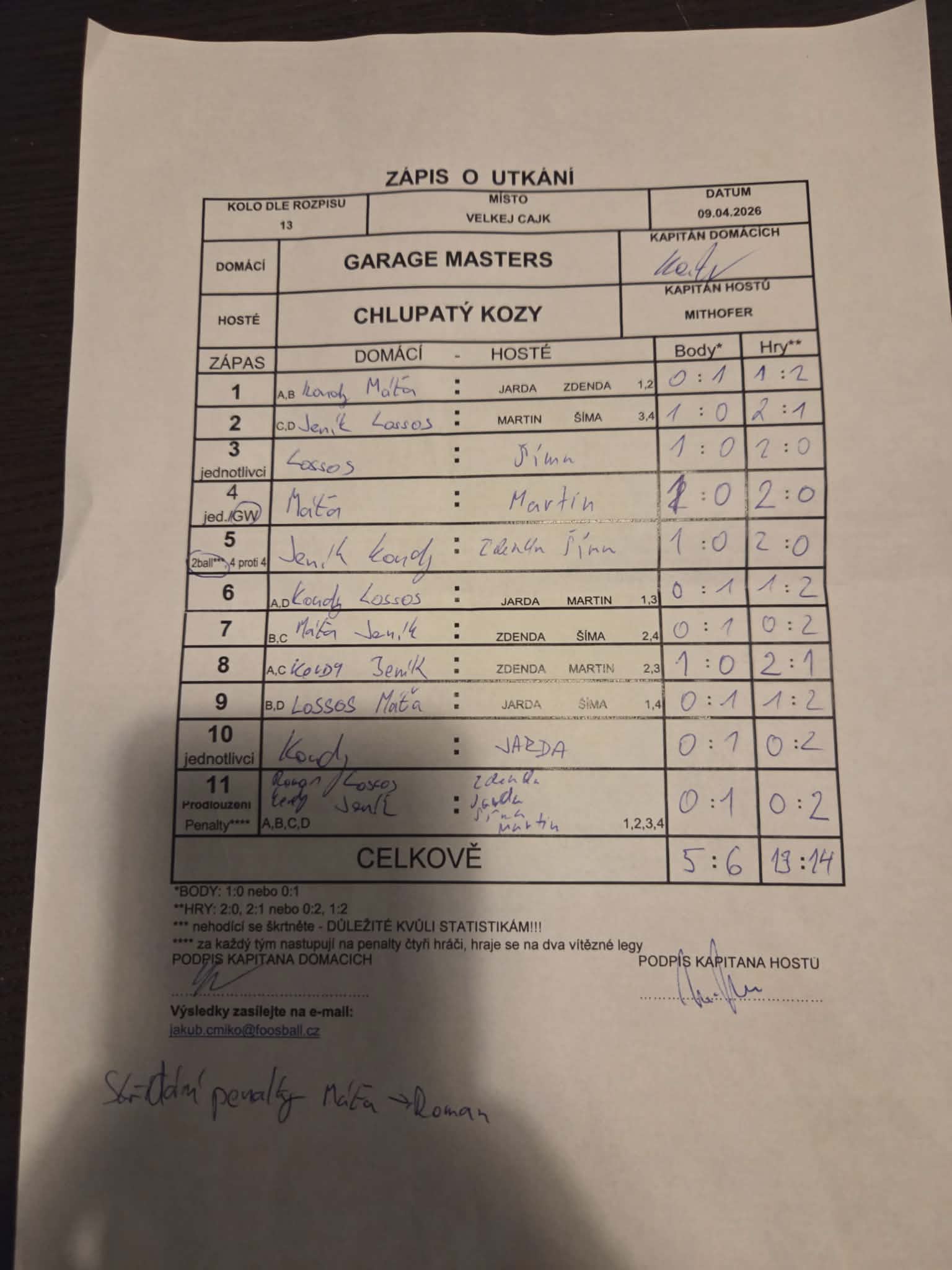 | Disciplína | Počet zápasů | Výhry | Prohry | Úspěšnost |