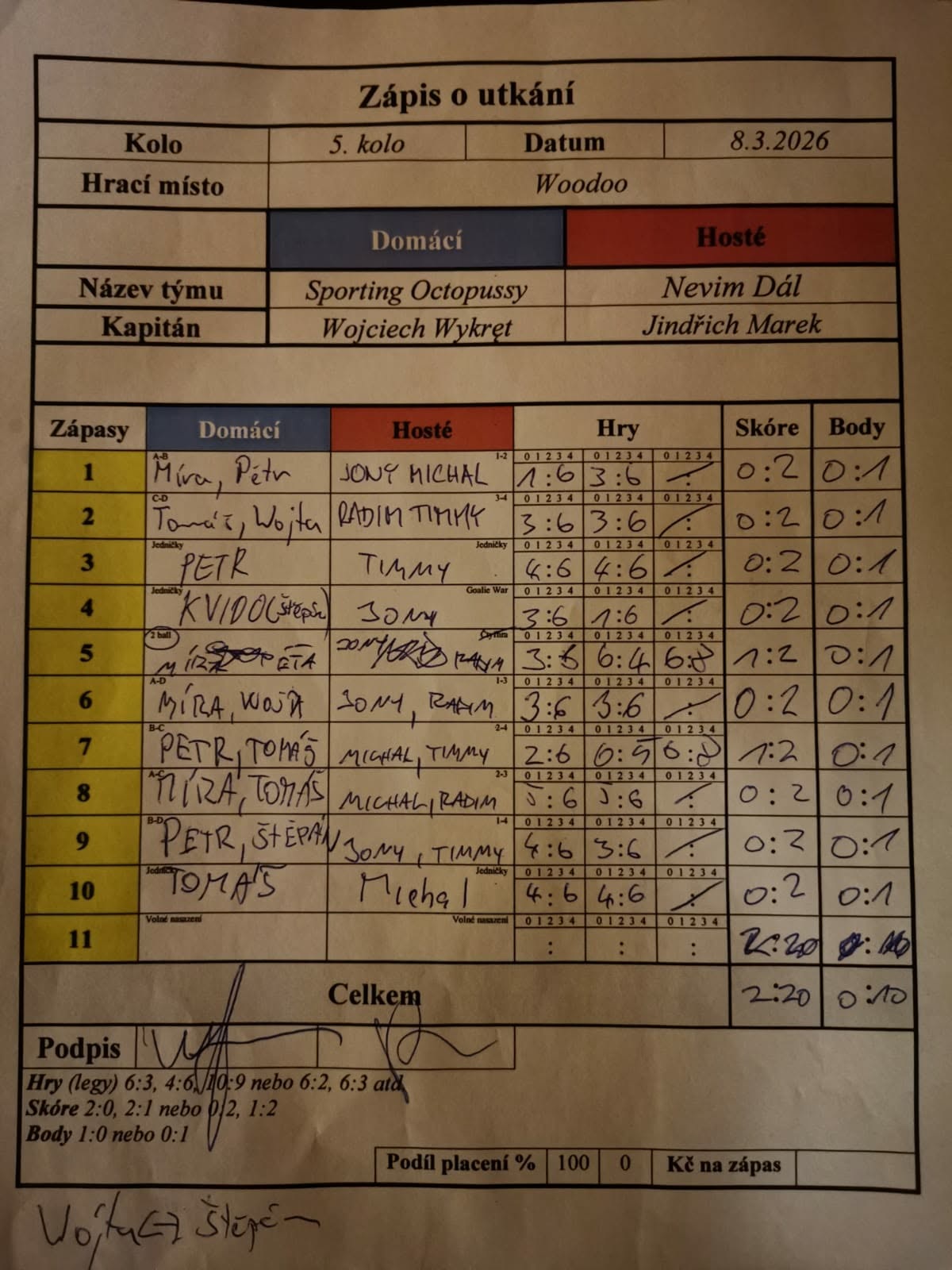 | Disciplína | Počet zápasů | Výhry | Prohry | Úspěšnost |
